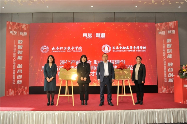 会上,举行了深化产教融合助力院校建设用友·新道现代产业学院揭牌仪式。