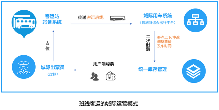 该服务依托倍施特科技公司开发的站务系统为中心,结合其综合出行平台系统,将传统客运班线与出行平台进行传递,由出行平台系统对传统班线进行二次封装,在传统客运班车运行线路途经点乘客聚集较多的区域,设置客运停靠点(中途停靠点已向相关主管部门备案),调整票价和发车时间,并进行统一库存管理。
