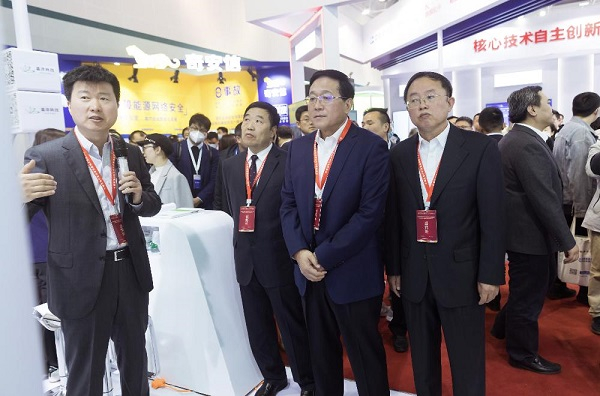 (中国石油天然气股份有限公司总地质师,中国石油学会理事长焦方正、中国石油学会副理事长兼秘书长徐凤银、中国石油天然气集团有限公司数字和信息化管理部总经理胡炳军等领导莅临嘉洋科技展台参观指导。)