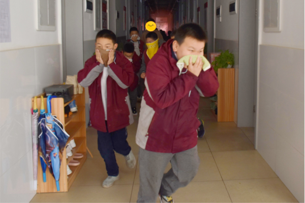 随着消防警报声的响起,学生们按照既定逃生路线弯腰捂鼻从宿舍中有序疏散。在正副班主任、疏散员的帮助下,各班快速有序地从宿舍楼疏散到操场指定位置,顺利完成疏散任务。