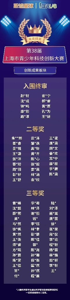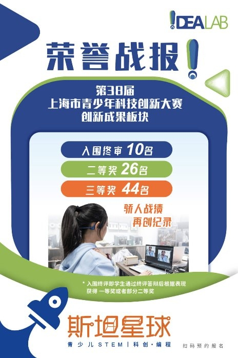 斯坦星球ideaLab此次有80位学员在上海市青创赛中获得成绩,85%的学生都斩获了奖项!让我们恭喜这些同学!