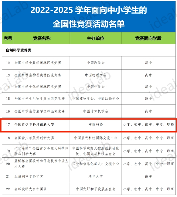 在今年刚发布的45项教育部承认的中小学赛事白名单中,科创类比赛占了1/2,由原来的20个增至23个,全国青少年科技创新大赛每年上榜,保持其位置稳固不变。