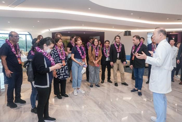 2023年3月30日,中国国际新闻交流中心亚太中心14国16 名记者、中东欧中心 8 国9名记者一行来到了位于海南博鳌乐城国际医疗旅游先行区的启研干细胞抗衰老医院进行参访。启研医疗国际院长荒木英世教授及医院院长黄国军亲切接待了国际媒体。