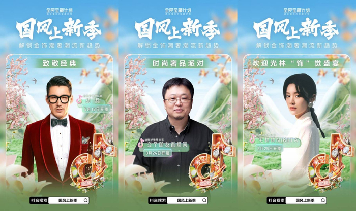 在品牌扎推上新的春日,「全民宝藏计划·国风上新季」活动锚定抖音电商珠宝潮奢行业特色,抓住“国风”这个关键词拆解玩法策略,携手商家和达人产出优质内容,既引领了春季潮流消费趋势,也促成品牌流量、声量和销量三重丰收。