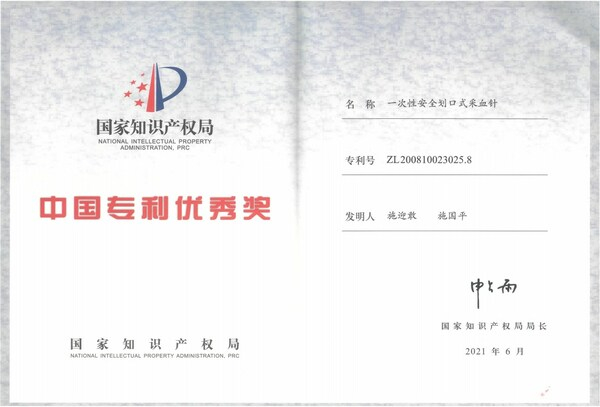 近日,国家知识产权局第二十二届中国专利奖评审结果公示,苏州施莱医疗器械有限公司研发生产的“一次性安全划口式采血针”荣膺中国专利优秀奖。同时,公司在2022年苏州市质量奖获奖组织名单中也是榜上有名。