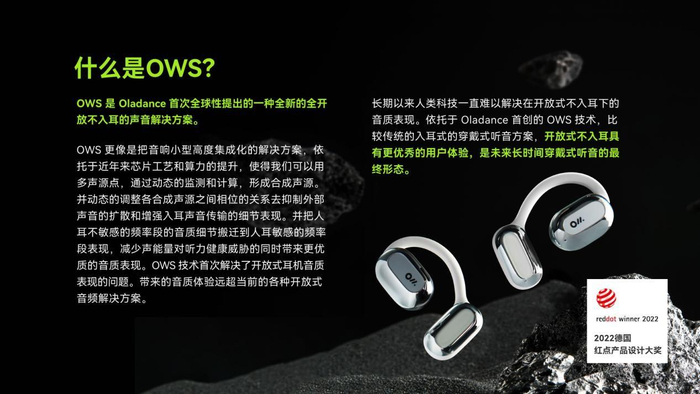一切源自于2021年,Oladance(由原BOSE团队创立)在行业峰会首次全球性公开提出“OWS(Open Wearable Stereo)”的概念。