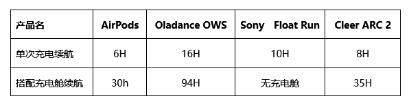 通过以上数据,我们可以发现,开放式耳机普遍续航较长,但其中Oladance的续航时间优势非常明显。