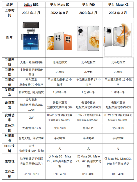 相较华为P60、Mate 50、Mate X3系列产品的卫星功能,LeSat B52卫星精灵功能更强大,才能称的上真正意义上的“捅破天”。