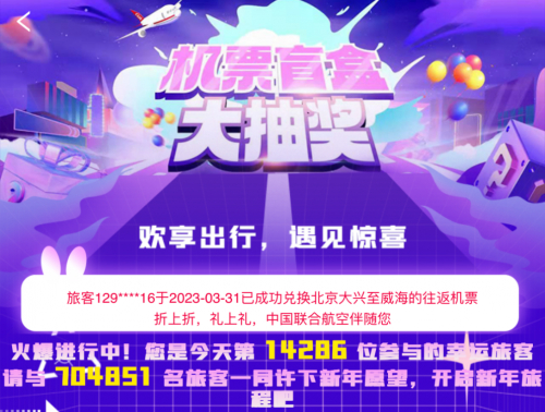 随机飞&盲盒飞行家升级调整,中国联合航空助力春季畅游