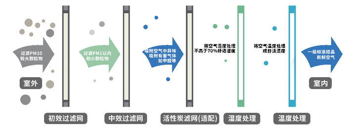 在雾霾严重的天气状况下,传统新风系统大量引入室外不洁净空气会导致净化效率低,无法起到室内空气净化的效果。