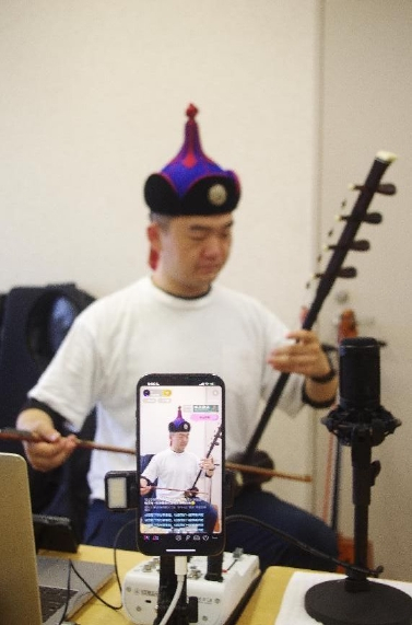 阿拉腾沙没有太多的直播经验,第一次直播选在了下午。他准备了自己最拿手的三首曲子:《牧马青年》《草原牧歌》《鄂尔多斯民歌连奏》。