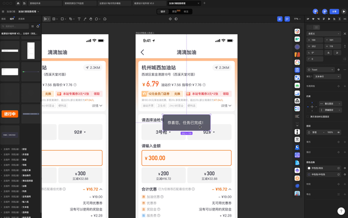 小桔能源的设计师们对MasterGo的众多功能赞不绝口,高级设计师周章琪在采访时提到,除了组件库之外,MasterGo还有很多实用功能可以帮助他们更高效地完成工作,例如自动布局和插件资源等等。