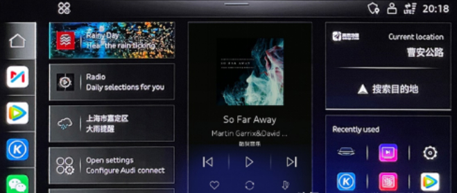 “高山流水觅知音”,都说高山流水好找,知音难觅,而上汽奥迪A7L采用基于安卓平台开发而来的车机智能桌面——AI Launcher智能推荐,就如同我们行车途中的知音,可以根据定位和用车习惯,主动提供和日常出行中大部分用车场景相关的内容与服务。比如出差在外,到了吃饭时间,AI Launcher会做出用餐提醒,并结合位置推荐附近的餐厅,在车主选定后自动生成路线并导航;在不熟悉或者比较繁忙的路段,AI Launcher还可以精准定位并推荐停车位;油量不足时,AI Launcher可以优选附近加油站,并规划最优路线,实在是贴心小帮手。