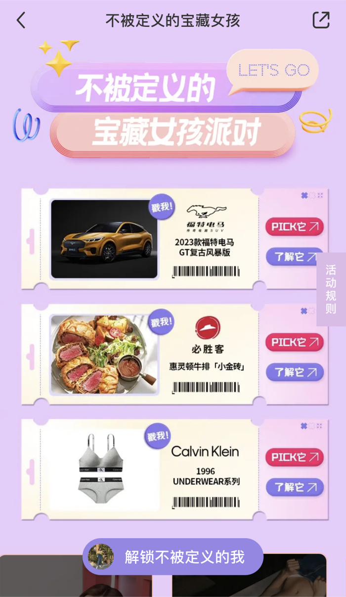 今年 3.8 节,小红书紧贴社区热点,借力营销风口,携手必胜客、福特电马、Calvin Klein 这三大宝藏合伙人,发起「不被定义的宝藏女孩」专属活动,达到品牌破圈效果的同时,带动更多女性大胆表达自己,引发无数共鸣。