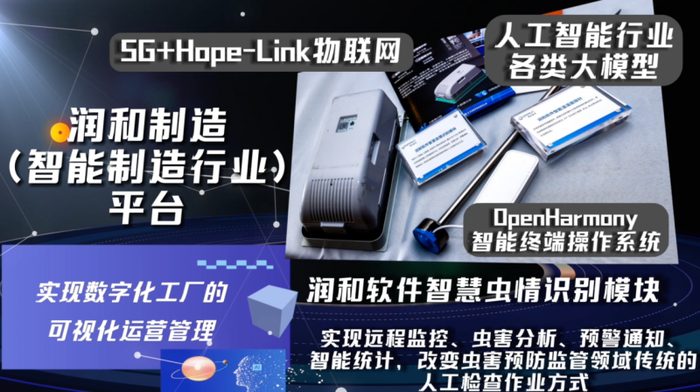 基于润和软件创新研发的大模型和平台在智能制造领域的数智应用成果,包括智慧虫情识别模块、AI识别读表模块、智能网关产品、多功能智能电表、智能温湿度探针等产品。目前有60家纺织机企业在活跃使用,总设备接入量达1万+。