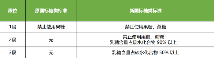 在糖类含量上,新国标的限制就更大了。一段、二段配方奶都禁止使用果糖、蔗糖,及以它们为原料的其他碳水化合物,例如果葡糖浆等。三段配方奶虽然没有明确限制果糖和蔗糖,但要求乳糖含量占碳水化合物 50% 以上,以此限制其他糖类的添加。