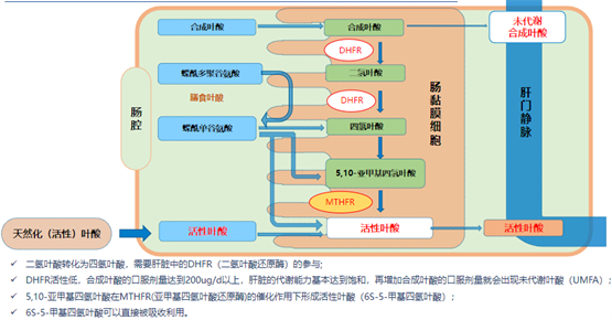 其次,我国约78.4%人群存在叶酸代谢障碍,服用合成叶酸会产生不同程度的未代谢叶酸,未代谢的叶酸残留体内将对人体健康产生不良影响,造成危害。相反,具有活性的5-甲基四氢叶酸由于不受叶酸代谢酶基因多态性的影响,可直接被身体吸收利用,所以适用于各种人群。而获得天然化叶酸认证的叶源酸®则是补充5-甲基四氢叶酸的最佳选择,并在多种疾病预防和治疗中发挥重要作用。