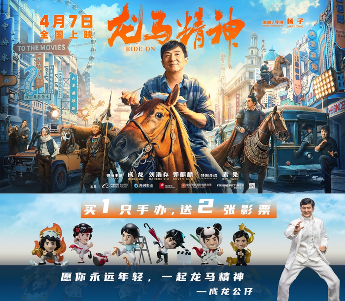 4月7日,成龙新片《龙马精神》正式上映,该片讲述生活落魄的武行老罗(成龙饰)有一匹爱马“赤兔”,他一直想把它培养成片场的动作明星,不料却深陷官司,只能求助多年未见的女儿小宝(刘浩存饰)和她的律师男友乃华(郭麒麟饰)。小宝一边帮老罗打官司,一边劝说他不要带着赤兔玩命做危险动作,老罗不顾女儿反对继续偷偷训练赤兔,同时又对准女婿乃华展开了各种考验。该片首映后,影迷纷纷落泪,感慨像成龙影片中所呈现的龙虎武师精神,或会因时代变迁成为绝响。