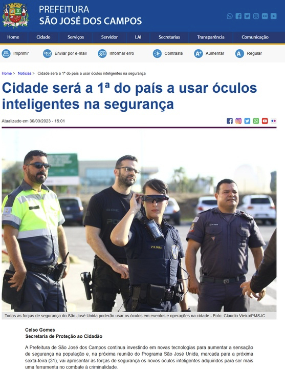 近日,为提高城市居民的安全感,巴西圣若泽多斯坎波斯市使用杭州灵伴科技(Rokid)自主研发的单目光波导AR智能眼镜Glass 2,利用红外测温、增强现实、人工智能等模块,应用于城市公共安全及反恐事业,是巴西在公共安全领域首个使用AR技术的城市。