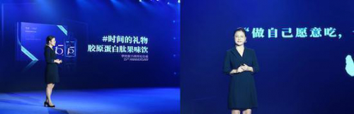 除了妍诗美外,当晚妍膳美也推出胶原蛋白肽果味饮15周年纪念版,“这十五年,我们与时间共成长,胶原蛋白是我们妍膳美的第一款产品,也是伊的家品牌符号之一”据伊的家产品总监陈章介绍,胶原蛋白上市11年以来,实现多次迭代更新,并推出多款纪念款,广受万千女性好评。