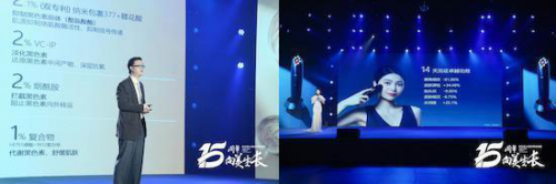 面对消费者的功效护肤需求,妍诗美在当晚重磅发布两大新品——妍诗美烟酰胺淡斑美白精华液和射频美容仪。