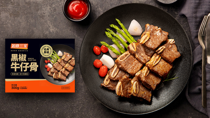 如意三宝的黑椒牛仔骨是一款成功出圈的高品质产品,受到了李佳琦、东方甄选等顶流直播间以及林依轮、吉杰等明星直播间的高度认可并多次倾力推荐。秉承“好食材微调理”的加工理念,黑椒牛仔骨由五星级酒店大厨匠心轻调味健康去腥,大程度保留牛肉本真风味,带骨连筋肉质厚实,十分有嚼劲。