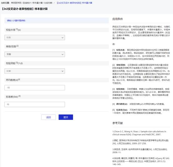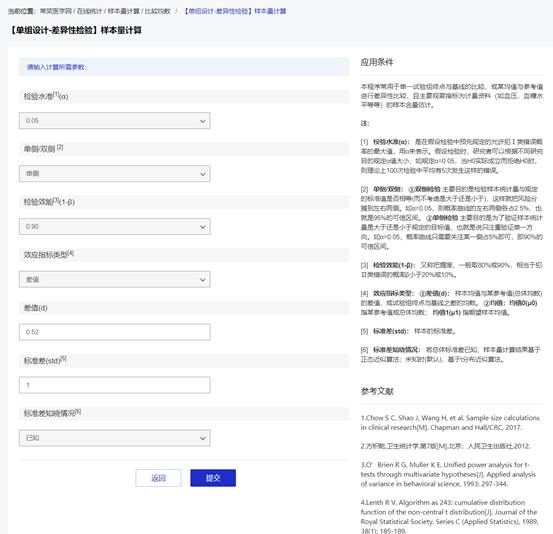 这个时候可能有人要问,这些软件大部分都需要安装和付费,有没有更高效一点的在线统计工具推荐,相互辅助使用,达到一个互补的作用。在这里给大家推荐一款在线样本量计算小工具——常笑医学网的常用临床研究在线样本量小工具,该在线计算样本量的小工具的其计算方式广受欢迎,首先,采用全中文界面,且带指导、提示和条件控制;其次,不需要下载安装,只要能上网就能实时在线操作完成;最后,功能强大,已经开发了20多种医学研究中最常见的样本量计算方法,能满足临床上90%医生的样本量计算需求。