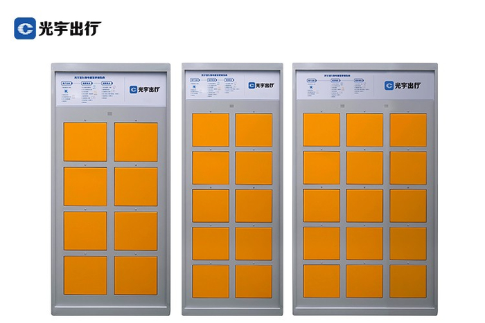光宇出行开发制造了8-15仓不同仓型、不同参数的换电柜,可以根据地形、地貌、电网适配、用户密集度等条件,灵活分布在城市的各个区域,资源利用率更高,更有利于城市的布局。在换电频繁的区域,装配大仓型换电柜,使换电网点的承载力更高,有效综合降低运营成本的同时可以服务更多用户。在换电需求比较均衡的区域,装配小仓型的换电柜可以降低安装及运维成本,节约资源。不同规格的换电柜可以有效减少电柜投入总量,避免类似共享单车的城市垃圾产生。