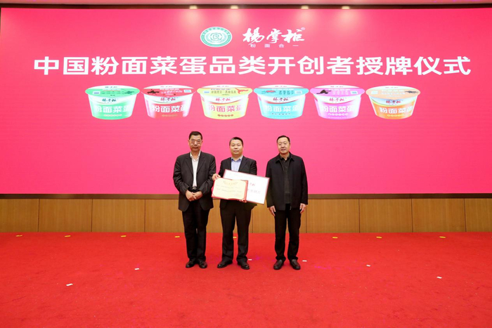 会上,杨掌柜粉面菜蛋荣获河南省食品工业协会颁发的“粉面菜蛋品类开创者”荣誉称号。中国食品工业协会副会长、河南省食品工业协会常务副会长陈振杰,河南省工业和信息化厅食品工业办公室主任许新共同为杨掌柜授牌。据艾媒咨询数据显示,随着消费市场的不断升级,近年中国方便面市场创新不断,市场整体呈增长态势,2021年全国市场规模达1338.8亿元;其中粉面菜蛋类细分市场成长趋势亮眼,2022年全国市场规模将达到14亿元,未来三年有望保持30%以上的年增长率,是成长性最高的细分品类之一。
