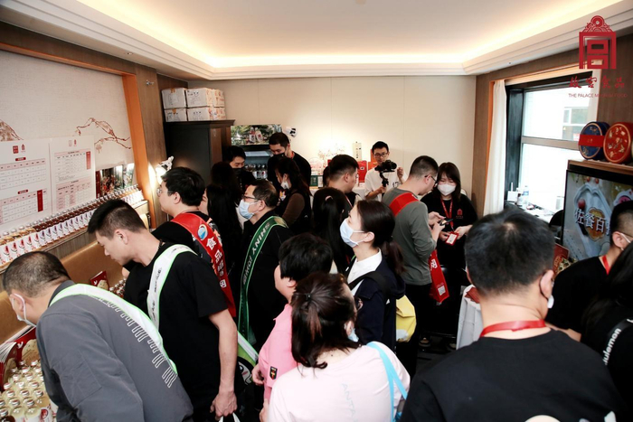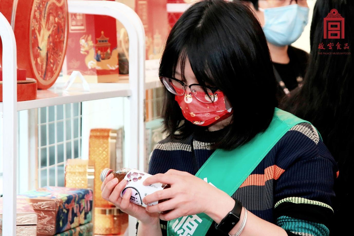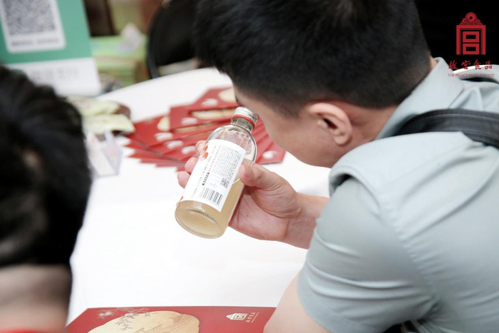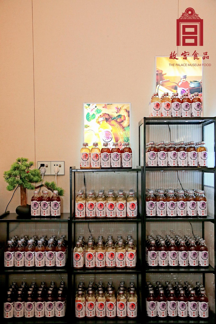 此外,瓶身标签经典宫廷纹饰宝相花的运用,瓶盖“故宫食品”的视觉传达,以及糖酒会的现场陈列,以文化感、互动感、空间感三感交互的打造,使得品牌文化更加深入人心。