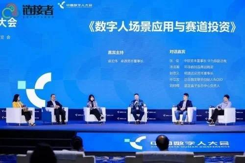在《数字人场景应用与赛道投资》圆桌对话环节中, 卓源资本董事长袁宏伟、 中欧资本董事长华为原副总裁张俊、 环球数码首席战略官涂浩瀚、明道远见资本董事长赵忠义、 达旦数生联合创始人&CEO孙立发、蓝亚盒子生态中心负责人刘帅辉围绕数字人展开了技术、商业、金融等方面讨论。
