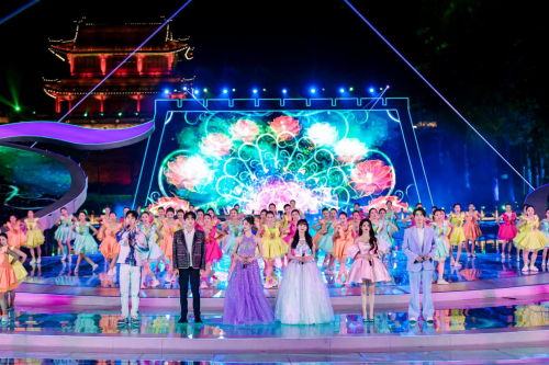 当晚的开幕式演出在荆州古城东门宾阳楼护城河畔举行,通过“楚魂、楚颂、楚辞、楚风”四个篇章展演,展示“凤鸣楚天,一鸣惊人”的独特意蕴,营造“凤鸟腾云,翱翔九天”的恢弘气势,呈现出一幅浪漫诗意、如梦似幻的楚文化画卷。