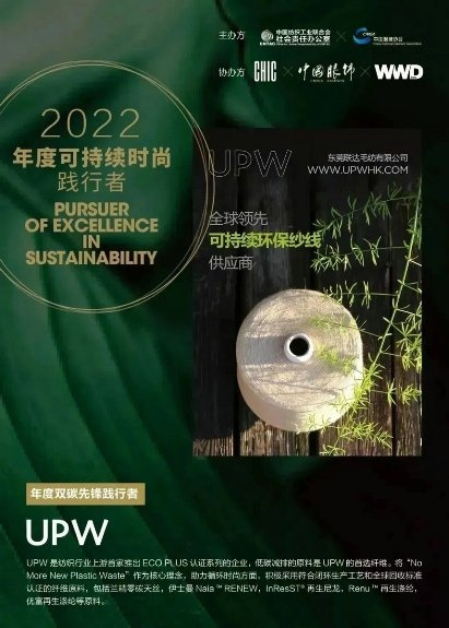 作为全球优秀的可持续环保纱线企业,UPW集团以绿色赋能中国可持续时尚产业.从顶层设计到落地实施,从创新纱线产品体系构建、产业链可追溯到消费者沟通,UPW已率先在“可持续时尚”开启布局,以DNA示踪剂注入纱线产品,从源头实现纱线可追溯性。以负责任的来源、降低产品碳足迹、可持续创新和提高透明度,构建低碳生态圈的创新方案应对可持续发展挑战等等,UPW以实际行动诠释了行业“领航者”的标杆。