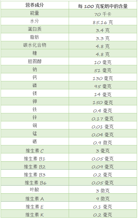 驼奶营养数据参考: