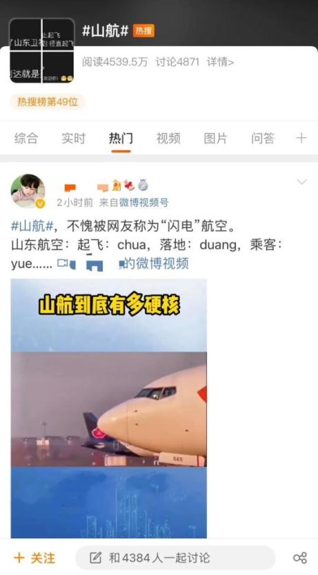 各种热评刷爆朋友圈,#硬核山航#的话题也突出重围迅速登上热搜。