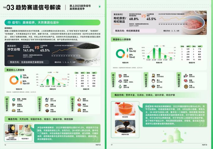 趋势赛道如冲饮谷物、枸杞原浆/枸杞制品等。