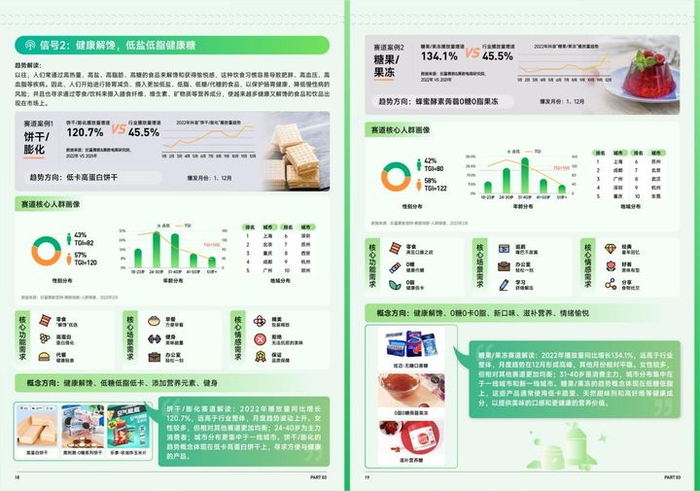 趋势赛道如饼干/膨化、糖果/果冻等。
