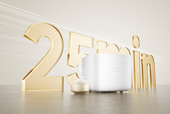 米家快煮电饭煲4L升级为25分钟黄金超快饭,源于米家电饭煲这7年来对3000+烹饪方案的数据沉淀,可以做到在25分钟内确保米粒的糊化度达到99%以上,与精煮饭模式相比,煮饭速度提升34%。速度提升的同时也可以保证米饭的口感,煮饭无需久等,米粒饱满溢香。