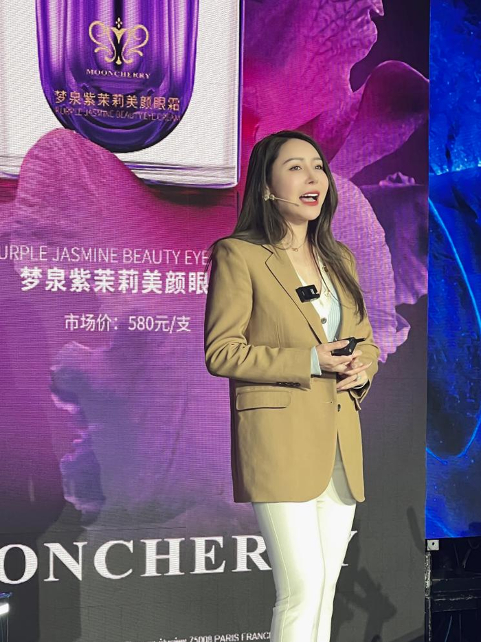 会上,贺冬冬女士作为品牌创始人,详细介绍了梦泉时尚集团十年的历程,从青涩到成熟,梦泉始终坚持初心,深耕原料护肤,用实力说话。从2014-2023十年征程中,梦泉开发出了黑白天鹅面膜、彩妆气垫,宝芙兰卫生巾、LUCKY ME香氛、梦泉小粉瓶、梦泉天鹅系列、梦泉蓝精灵、紫茉莉等一系列深受用户喜爱的优质产品,逐渐发展成拥有100+线下专柜实体店、多平台线上旗舰店以及3000万全网粉丝量的美妆护肤品牌。