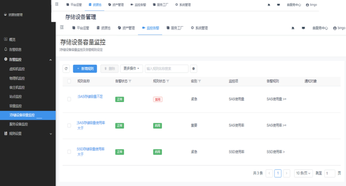 BingoCMP可以对客户应用系统所使用的CPU、内存、磁盘、网络等各类云资源的使用情况进行监控,此外,根据客户实际需求,包括云基础资源、数据资源、应用支撑资源、数字化应用等各个层面的运行特征,还可以对应用自定义监控指标进行监控,并与云平台进行联动,实现弹性、自动化的资源配给,也可根据业务使用情况回收IT资源,更好地应对业务应用的波峰波谷并发访问状况,保障业务持续、稳定、可靠运行。