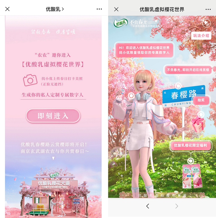营销的本质在于连接用户,AI Being和AIGC的价值是提供连接之后的智能交互与个性化体验。此次在双方共同打造的交互式场景中,用户可以量身定制专属数字人的形象与声音、与陈立农一起线上赏樱、抽取新品优惠券、参与福“粒”抽奖等,多重互动体验提升了用户的代入感,以强共鸣建立与品牌之间的长程连接。每个用户个体在互动过程中,都能感受到被尊重、被重视,大大提升了品牌好感度,也让优酸乳更具有生命力。