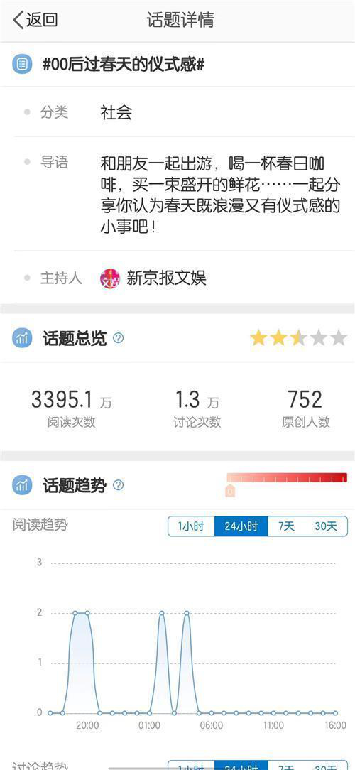 截至目前,#不经意间拍到的春天有多迷人# 阅读量达6754.7w;#00后过春天的仪式感# 阅读量超3395.1w+;#一起打包春天# 、#没想到事务所# 的阅读量也分别达到449.6w 、6237.8w。