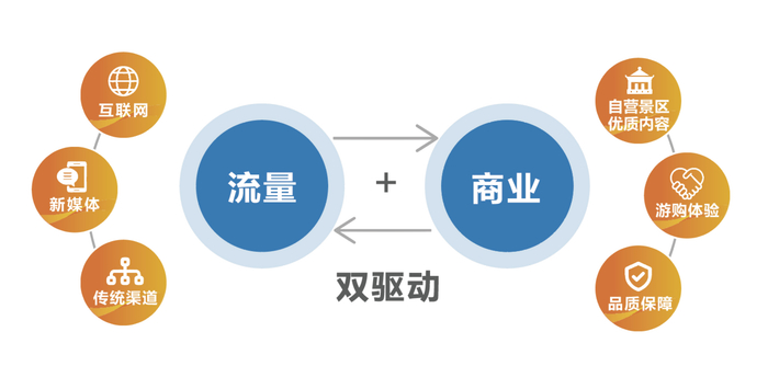 同时,打造创新体验的新消费商业,因地制宜地打造体验型消费业态,通过产品研发、文创品牌包装等方式让传统旅游资源提升IP价值构建、品牌营销和服务深耕一体化能力,从而形成资源、供给、需求无缝对接的景区商业运营生态圈。