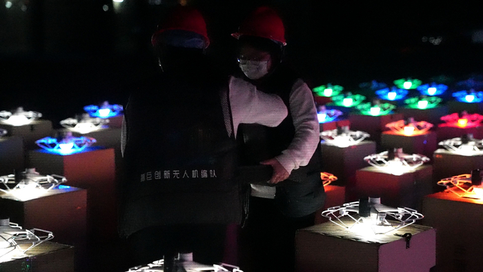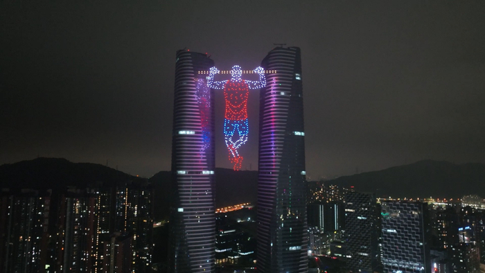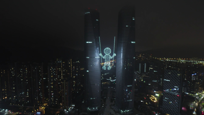 创纪录!全球首次环双塔无人机编队表演大秀!