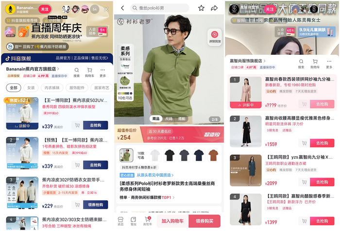 蕉内、衬衫老罗、赢智尚、Lacoste、特步、欧时力 ochirly、都市丽人、SINSIN、JESSYLINE 杰茜莱、金利来、乔拉、TEENIE WEENIE、生活在左等商家深度参与其中,百大服饰品牌选择抖音电商首发春夏新品,整体“上新月”活动期间,服饰行业订单量破万商品超4000个,支付订单量同比提升超70%。