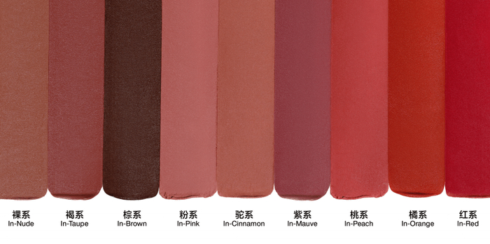 在INTONE色彩系统的应用下,INTO YOU新品“轻雾印色唇釉”也正式亮相,以裸系、褐系、棕系、粉系、驼系、紫系、桃系、橘系、红系共九大色系,颠覆传统唇妆产品色彩划分,全面优化消费者购物体验,让每一支唇釉的色彩都能直观、清晰地展示在消费者面前。