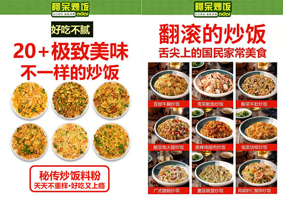 现在炒饭行业中,炒饭产品更新速度很快,只有不断推陈出新,才能持续稳定地发展。阿呆炒饭加盟品牌拥有豆豉牛腩炒饭、雪菜鱿鱼炒饭、酸菜牛肚炒饭等20+极致美味,不仅产品种类丰富,产品的口感更是十分的出众,给广大消费者留下了深刻的印象。