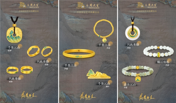 此系列主打国潮概念,从北宋王希孟创作的《千里江山卷》提炼文化情感与标志性设计元素,以青绿描绘壮丽山河,以珐琅演绎叠峦青峰,将千里江山凝结于饰,尽显东方气韵。这与近几年来消费者本土文化意识的集体复苏有着不可分割的关系。中国本土文艺复兴催生了大批中国特色的文创联名,如大白兔香水、故宫口红等跨界IP联名。作为一家国民品牌的周大生,借品牌代言人任嘉伦续约官宣,踩中国潮文化的“爆点”,用现代珠宝设计与时尚理念焕发传统文化的时尚新潮,使产品兼具美学价值与收藏价值,成功打入90后、00后这一新兴青年消费群体之中。