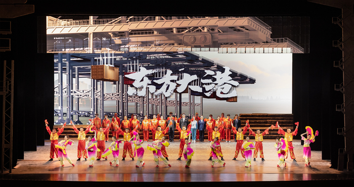 “中国工人中国港,傲然矗立在东方。一代人有一代人的使命,一代人有一代人的担当。”随着豪放的主题歌的唱响,京剧《东方大港》的演出迎来了尾声,京剧《东方大港》以东方艺术绘就东方大港,全面展现现代化产业工人矢志报国、勇于创新的家国情怀,集时代性、艺术性、思想性、观赏性于一体,力争成为一部留得下、传得开的舞台艺术精品!
