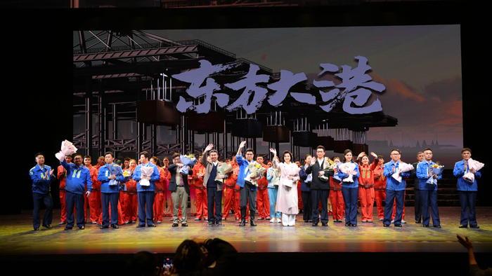 4月12日晚,由中共山东省委宣传部、中共青岛市委宣传部、青岛市文化和旅游局共同指导,山东港口集团、青岛演艺集团联合出品,青岛市京剧院演出的京剧《东方大港》成功亮相新时代舞台艺术优秀剧目展演!该剧以其严谨扎实的剧本创作,匠心独具的导演呈现,细腻动人的演员表演,赋有时代感的音乐唱腔以及大气恢弘的舞美灯光,打动了在场所有观众!首演现场,观众沉浸于剧情中,不断拍手叫好,为舞台上演员精彩的表演,也为这一群坚韧奋进的海港人!